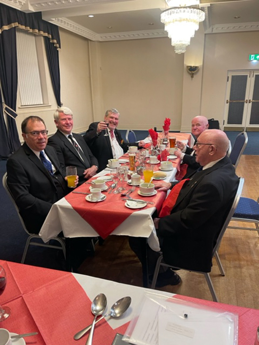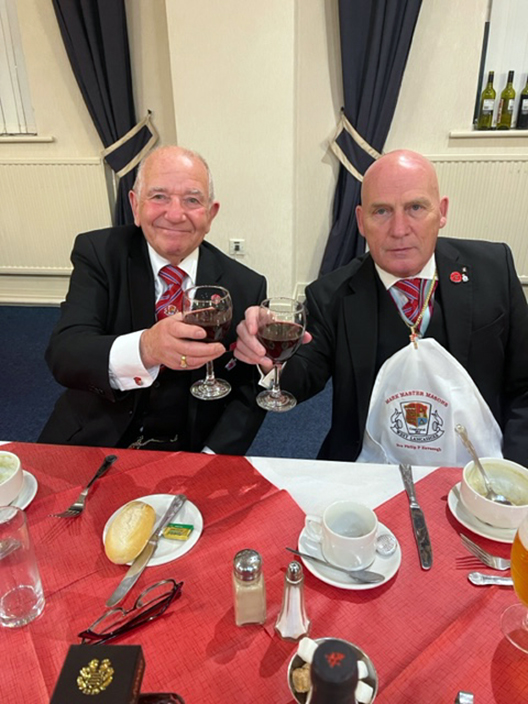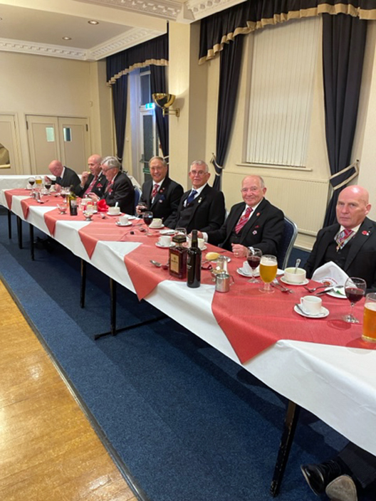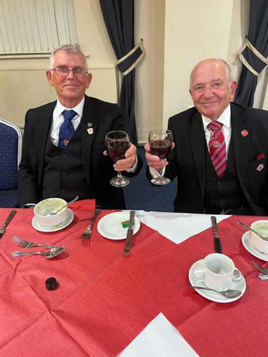 Rt W. Bro. Tom Jackson was present along with V.W..Bro Glyn Jackson Davies who proposed a very eloquent toast to the celebrant. Peter’s response being quite moving on a very emotive evening. |