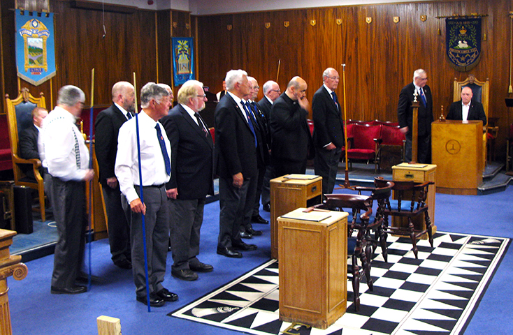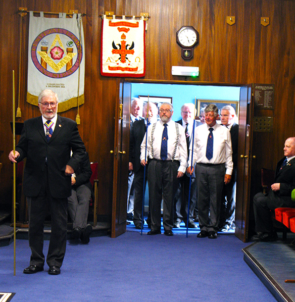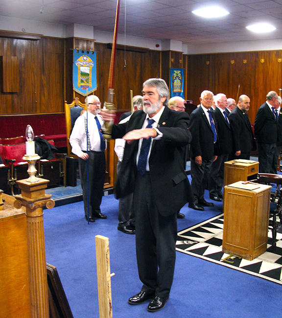 Quite a few members and visitors were already inside, some were enjoying a drink and a good old chinwag in the cosy bar area, whilst others were upstairs in the Lodge room waiting for the Team practise to commence under the watchful eye of our Provincial D.C W.Bro. Arthur Robinson PGJD. Once he was pleased with the effort everyone had put in which included members of last seasons Acting Provincial officers and the new Team members for this year, he said well-done everyone, you can have a short break now but please report back on time and “don’t leave your wands in the Lodge room”, now doesn’t that remind you of our last Provincial D.C. the “Legend”, yes you’ve guessed W.Bro. David Emmerson PGSD. | |