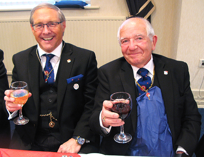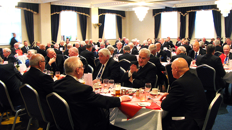 Everyone retired to the dining room, charged their glasses before taking up their allotted seats for the Festive Board, an excellent meal was served up by the very friendly and attentive Hall staff, the usual Toasts and Responses were given and I’m sure were all well received, I unfortunately had to leave before the end and make my way back to the little village in the South of the Province, Urmston, if I’ve learned one thing this last couple of weeks it is, No More Booster Jabs For Me, after yet another stay in Hospital. | |