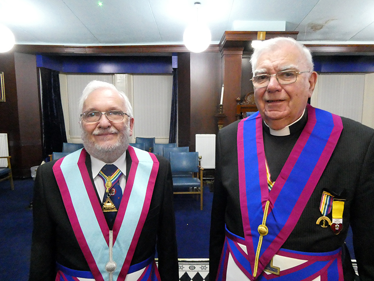 V. W. Bro. Stephen Windsor Leach and V. W. Bro. James Frances Rogers were both present as Senior members of the Lodge. |