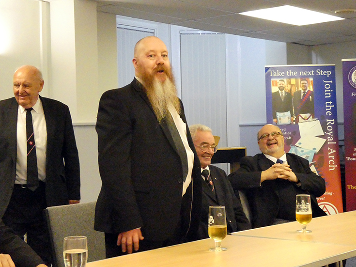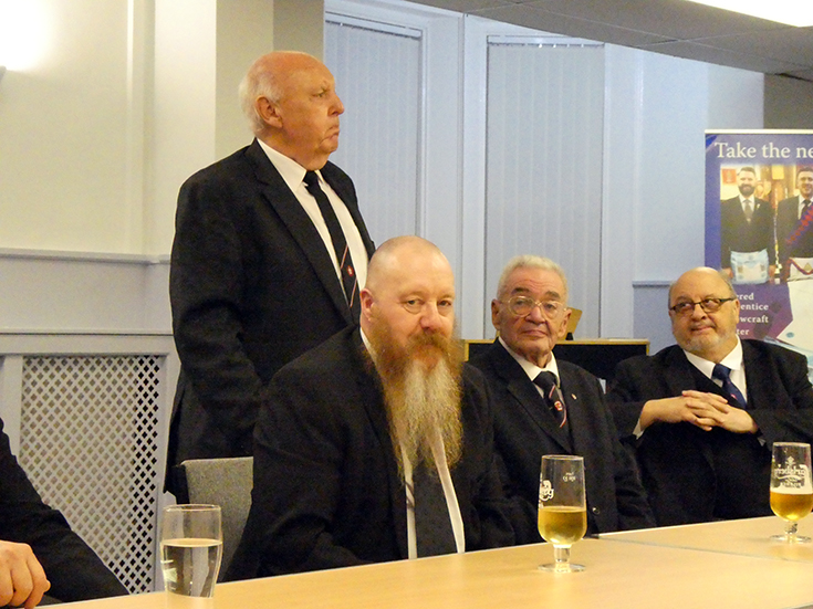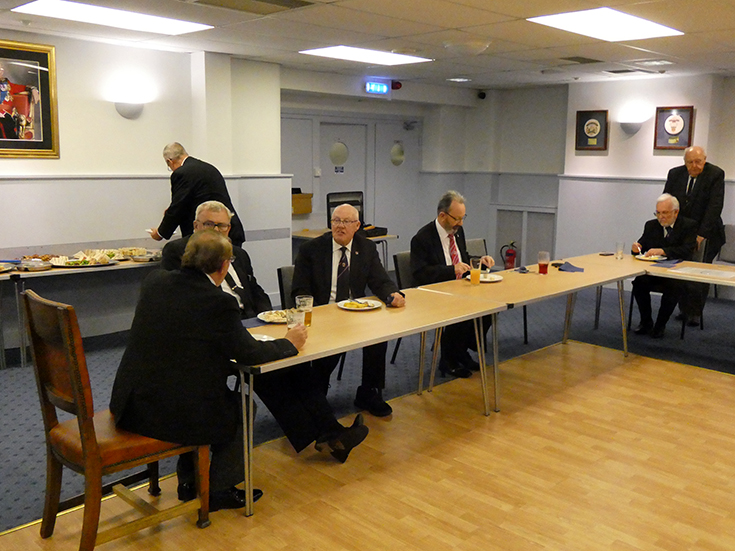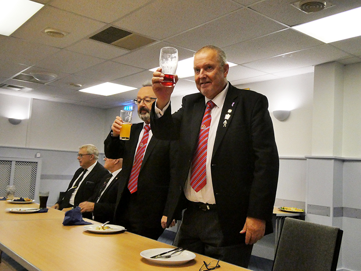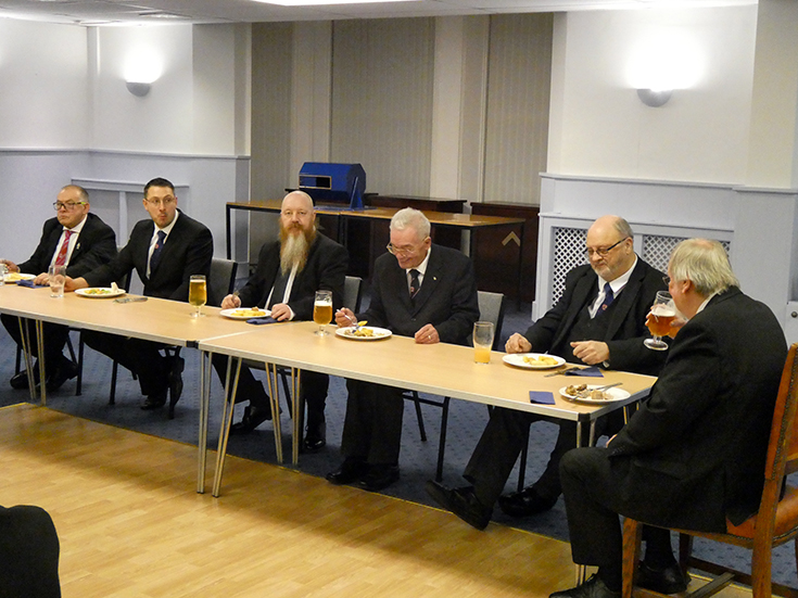 The Lodge business was finalised, and the WM closed the Lodge and the members, visitors and masters in office; Cleveleys Mark - Paul Smedley and Prince Setanta – Allan Gould, retired to the bar and onto the amply supplied festive board. |