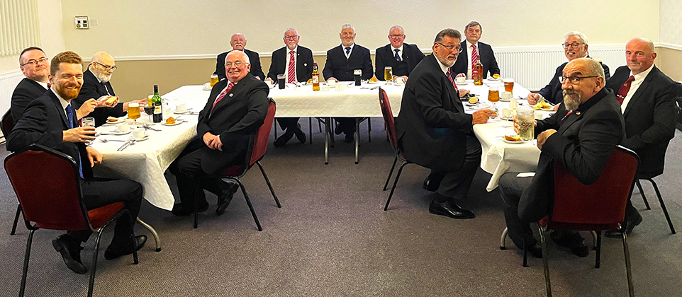 Not far to travel tonight, no on ramps, no motorways just 15 minutes and I was there to receive a warm welcome as always from W.Bro. Bob Allman the PGM’s Special Rep, the Dep Special Rep W.Bro. Tim Burns and all the other lodge members when I go to Eccles Mark. | |