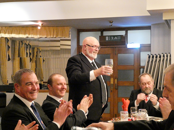 The Lodge was opened and the WM, Bro. Alan Barnes read a eulogy for WBro David J Winder A. Prov GM, who had passed away just before Christmas and whose funeral had taken place earlier that day. The Brethren stood to order as a mark of respect for a Brother who will be sorely missed. | |