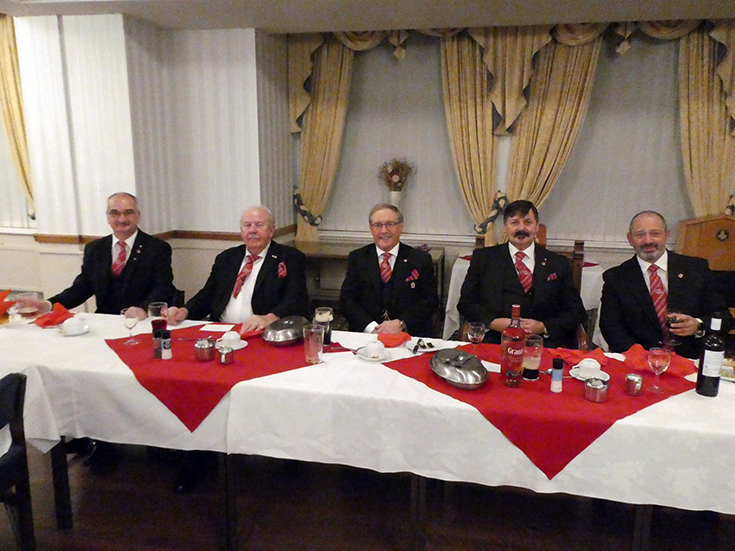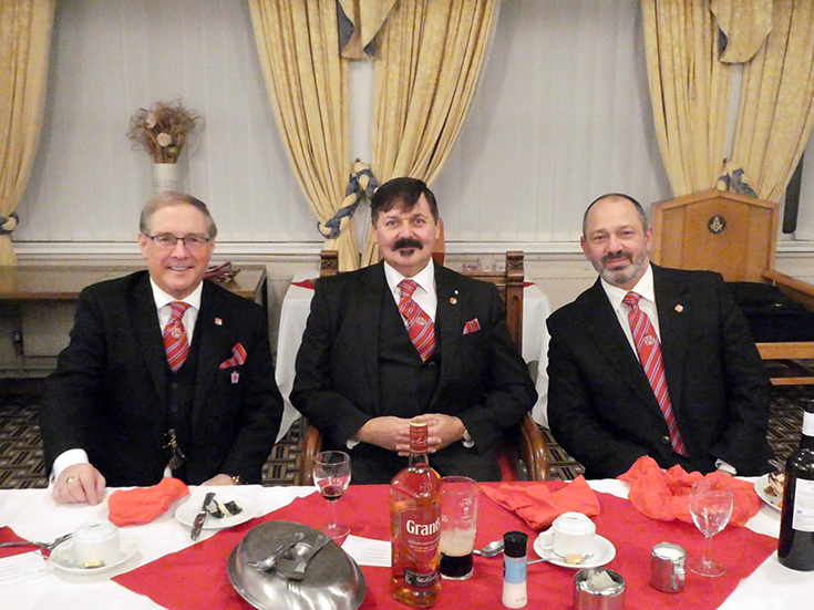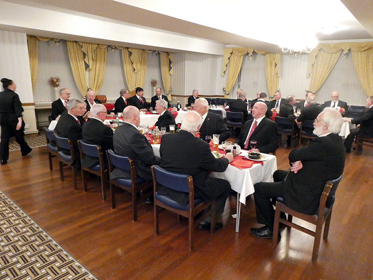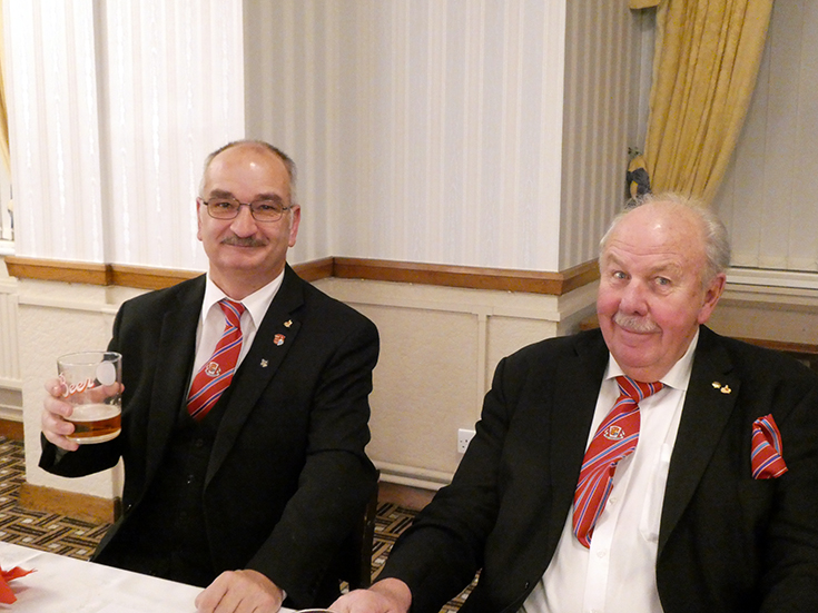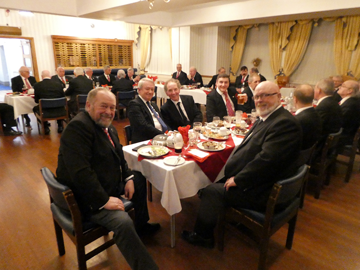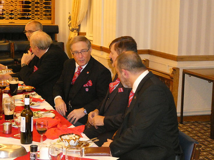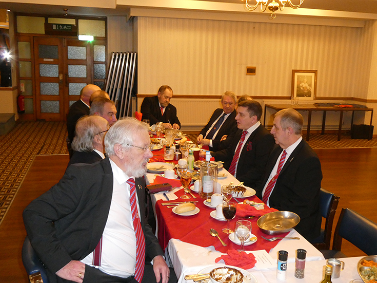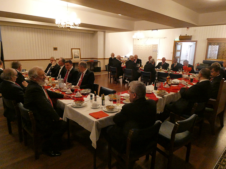 The Lodge was closed and the Brethren assembled in the bar for refreshments and onto the festive board. | |