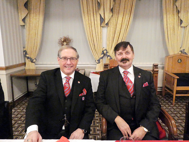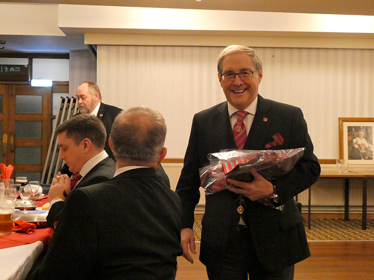 WBro Giles Berkely PGJD, Dep. Prov. G.M., sold some of the new Mark ties and the newly acquired pocket squares at the festive board. | |