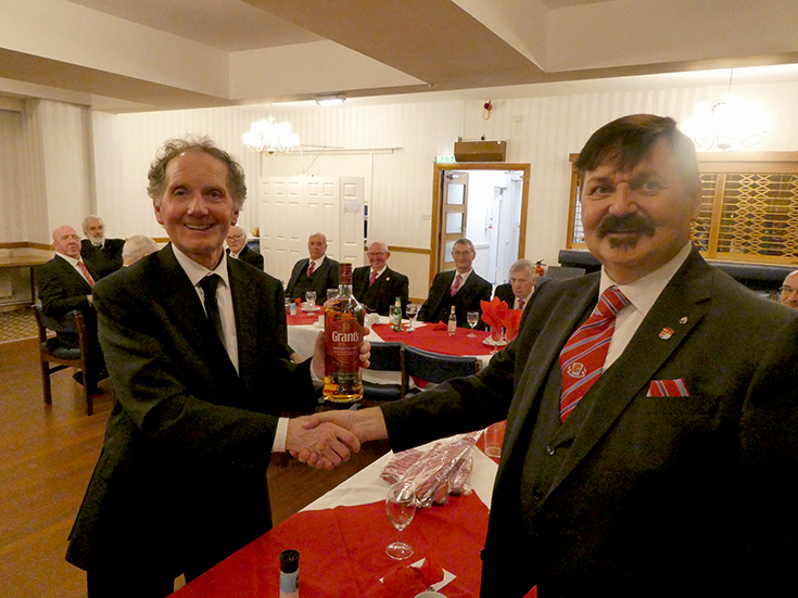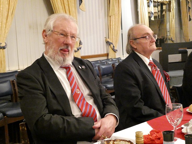 WBro Peter Maxwell acting as JW for the night, appeared to take great delight in attempting to inflict the ancient punishment on his big brother! | |