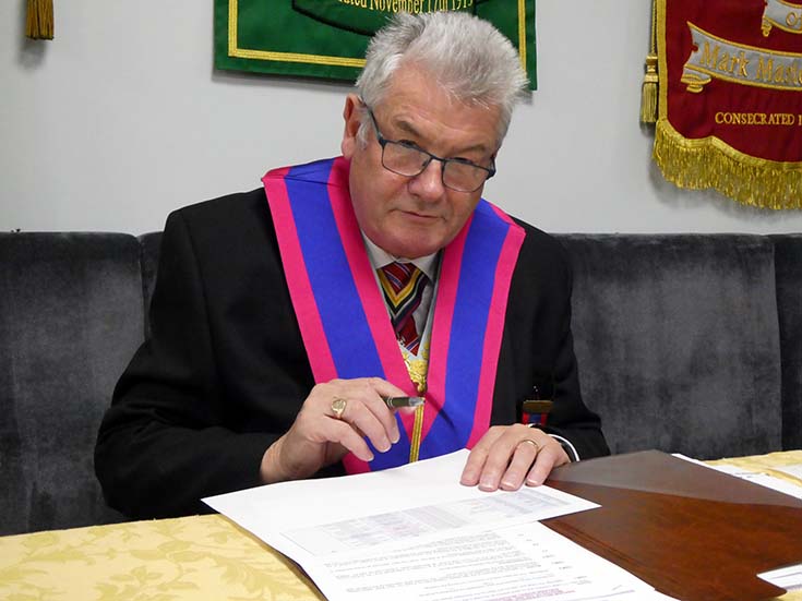 Bro Peter Roscow gave an eloquent and articulate talk on the tools of a Mark Master Mason, which was well received and appreciated by the Brethren. | |