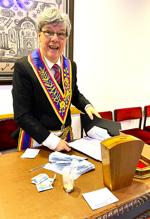 All in all, it was a great Ceremony, on its completion Keith congratulated the newly Installed Master and wished him and all the members a happy and healthy year ahead. The W.M. gave Keith a cheque to the value of £500 and then just as quick took it back before explaining that it was a donation to a Project called The Little Green Socks. The PGM said it was an excellent amount from a relatively small Mark Lodge and wished the project every success. | |