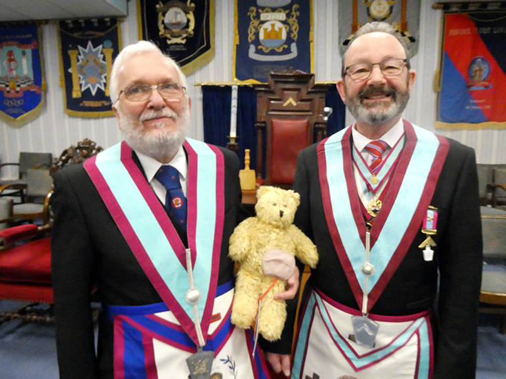 The charity is called “Buttony Bear” which supports children and young people who have a stoma. The charity provides a cuddly bear, an example of which VWBro. Rogers showed the Brethren and information for young children and support to older children and parents affected by the life changing operation. | |