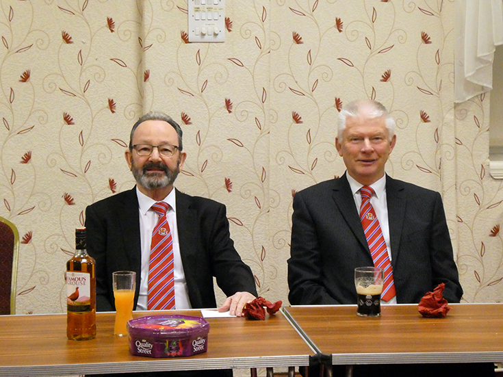 The Lodge was closed and the Brethren retired to the festive board for some sustenance; buffet, and lively conversation. | |