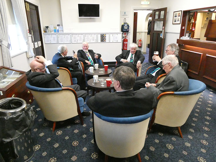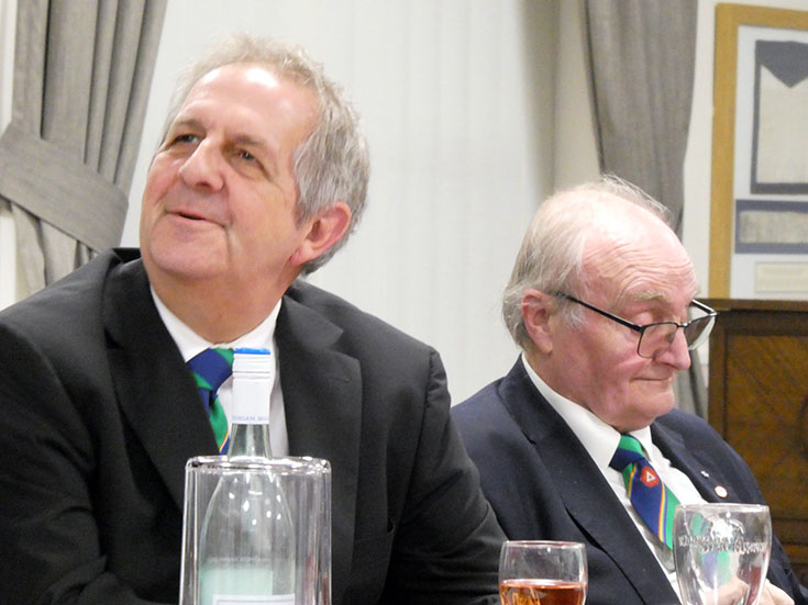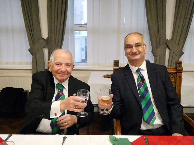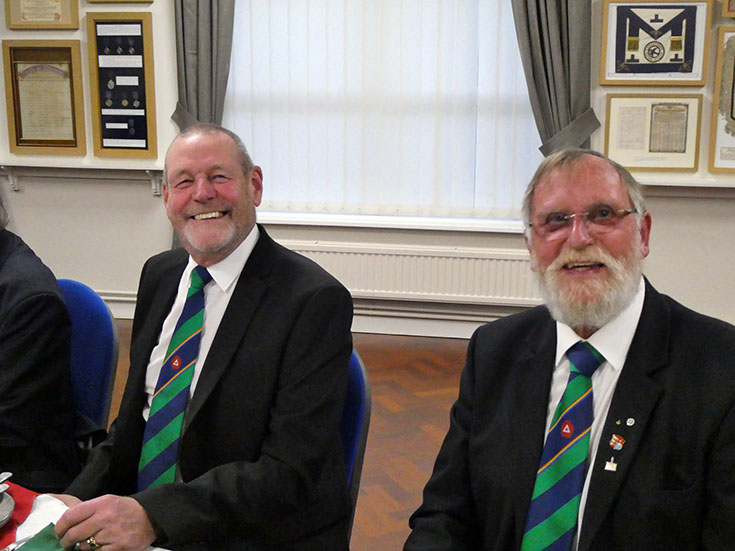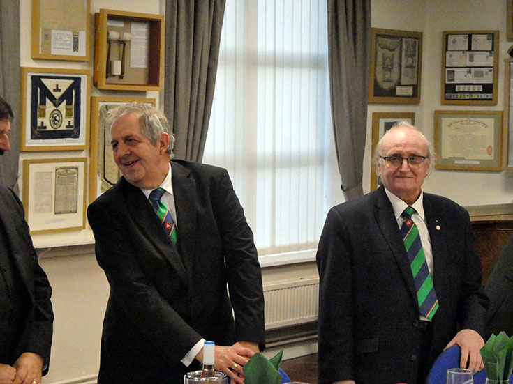 The Lodge was duly closed and the Brethren decamped to the bar area and onto the festive board, which was lively with good food, banter and good craic, which was enjoyed by all! | |