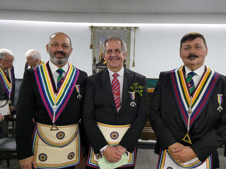 An excellent ceremony was carried out by members of the Lodge with the candidate guided around the Lodge floor by Bro. Alan Barnes (SD) and Bro. James Rashid (JD). WBro. Wally Atcheson acted as JW for the night. Bro. Barry Shaw (SW) gave an explanation of the steps with Bro. Barnes carrying out the actions! | |