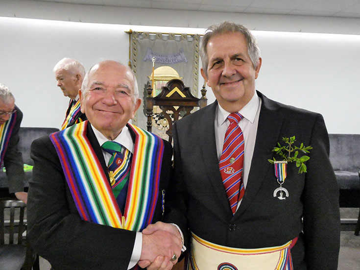 Following the elevation, the Lodge business was worked through, including a declaration for the Commander for the following year; Bro. Barry Shaw, who thanked the Brethren. WBro. Howard Emmett, was declared the treasurer for the ensuing year. WBro. Emmett thanked the Brethren. | |