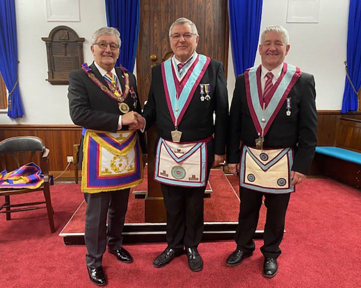 Though the ceremony was shared by the outgoing Master W.Bro. Derek Whittle and W.Bro. Donald Hesketh ProvJD this didn’t detract but rather enhanced the Installation.
