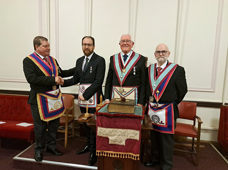 Friendship is not a large lodge, but one of quality with a healthy ladder and a very warm welcome. Adding to that number this evening, the advancement of Christopher Wright. | |