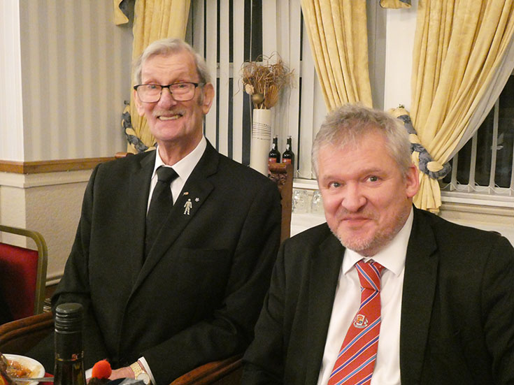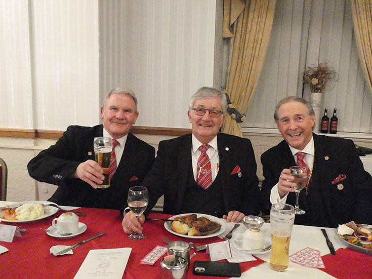 All the business being completed, the WM closed the Lodge and the members, Masters in Office, visitors and guests all retired to the bar and onto the festive board, where an excellent meal, accompanied by a very lively Mark meeting atmosphere and good craic, was enjoyed by all!