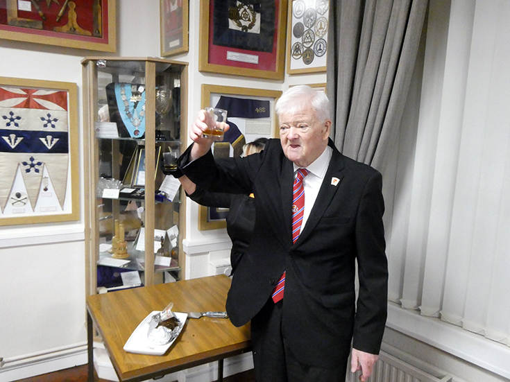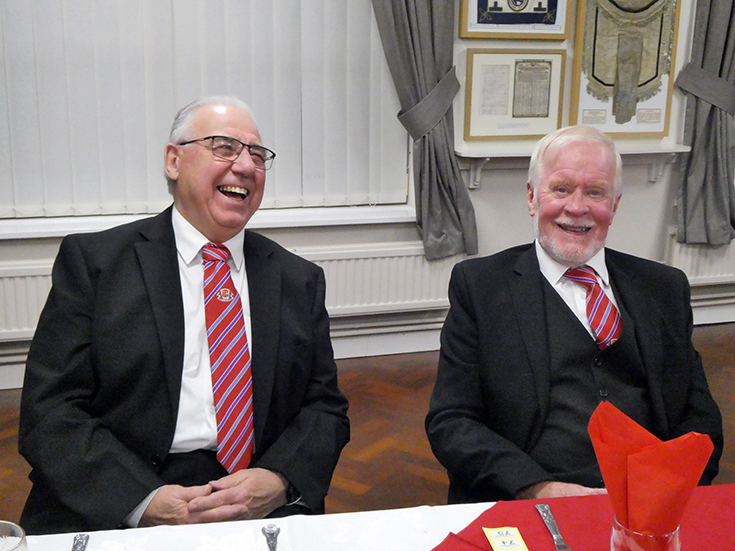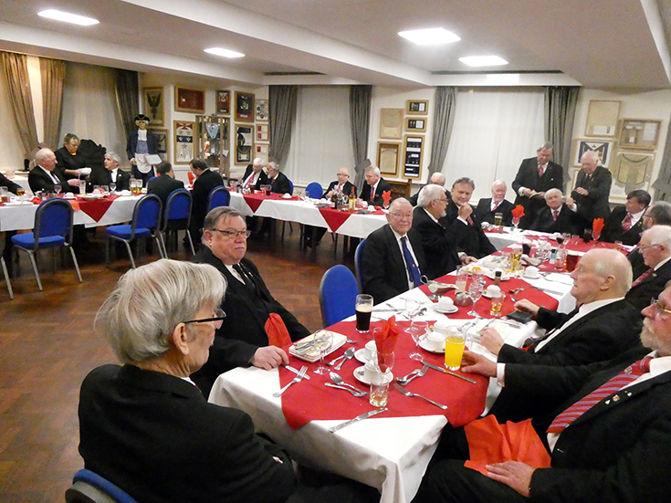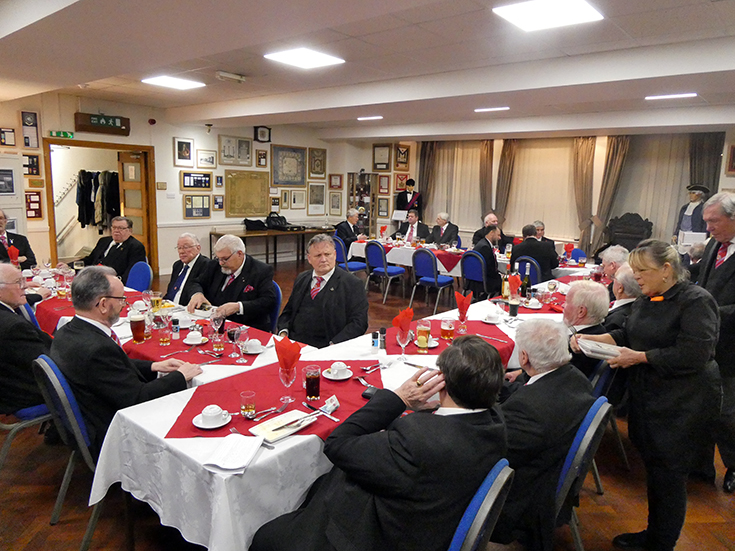 The WM worked through the remaining business and the Lodge was closed and the Brethren repaired to the bar and onto the festive board. | |