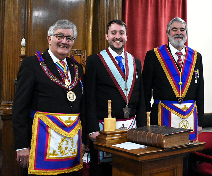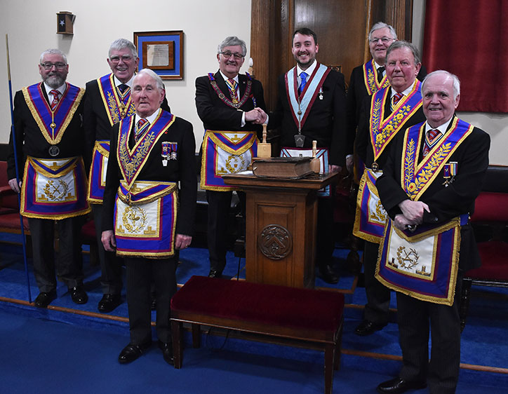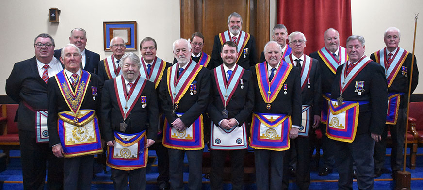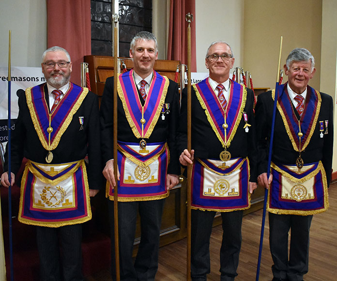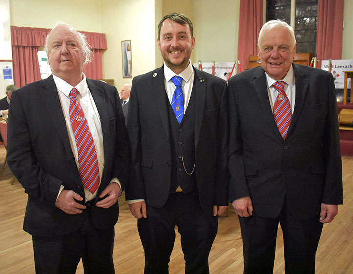 Principal guest on the evening was APGM Geoff Bury who was accompanied by two members of the provincial D. C’s team in the persons of David Rigby and John Dean. Provincial deacons Brian Benn and Chris Larder were also in attendance. Coincidentally both are also secretaries of their Mark lodges with Chris holding that role in Garnett Mark Lodge and Brian in Jubilee Mark Lodge No 375. | |