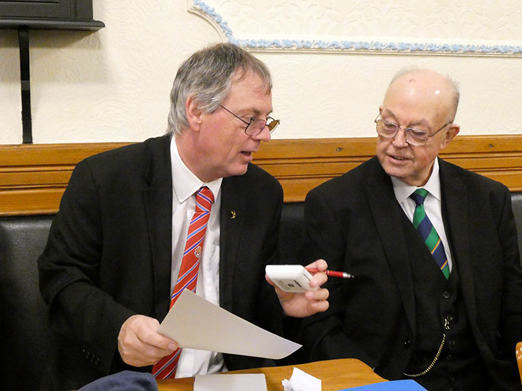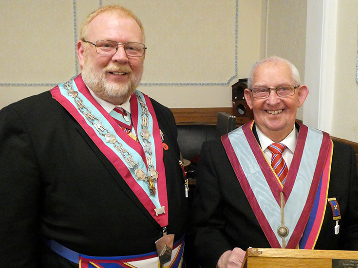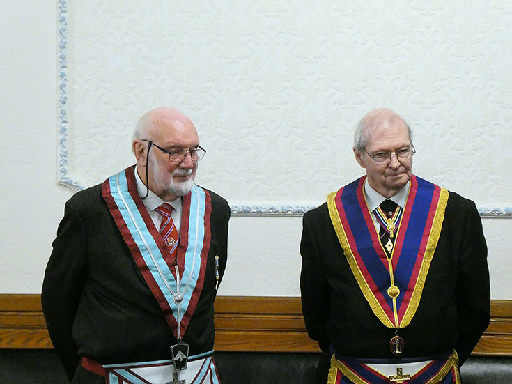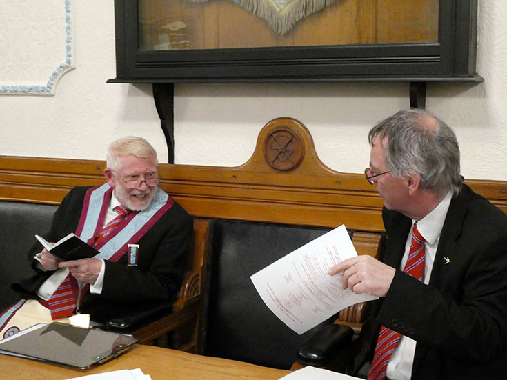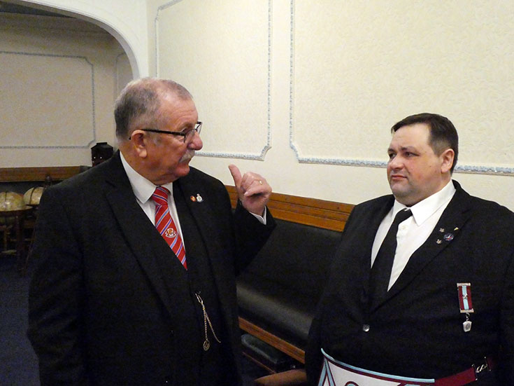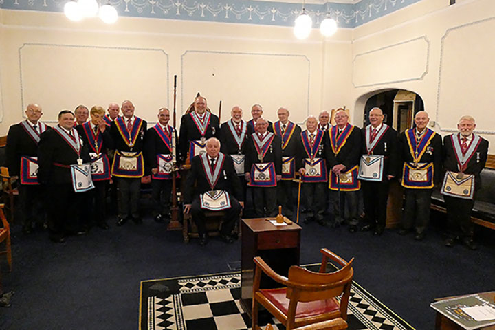 19 Brethren were present including three visitors: WBro. Tony Thackrah PProv.GJW, WBro. Steve Smith PProv.G. Snr. Stwd and WBro. Tony Cross DGSwdB.