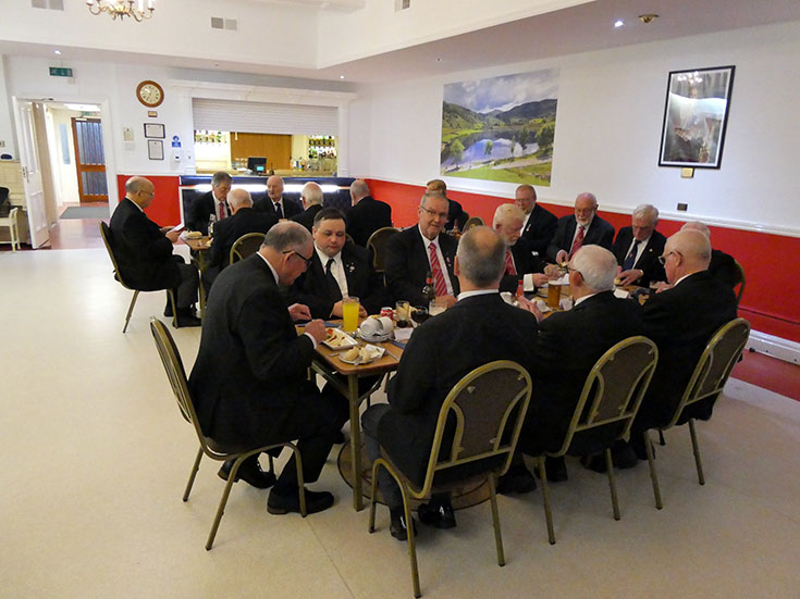 The Lodge was closed and the Brethren gathered in the bar and dining room for  the last time at the Hall. A nice meal was enjoyed by all present.