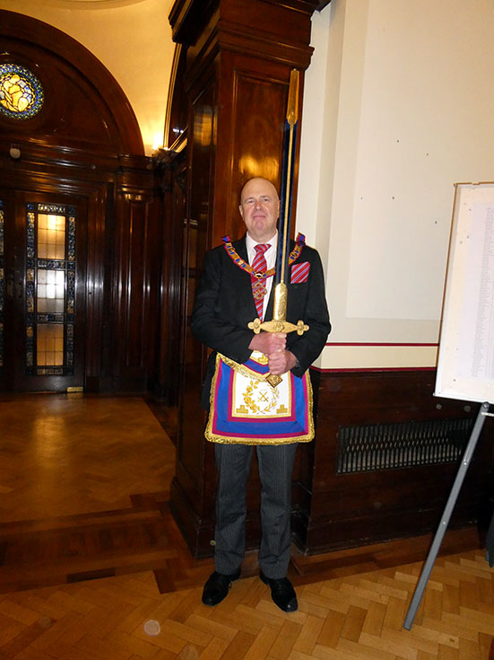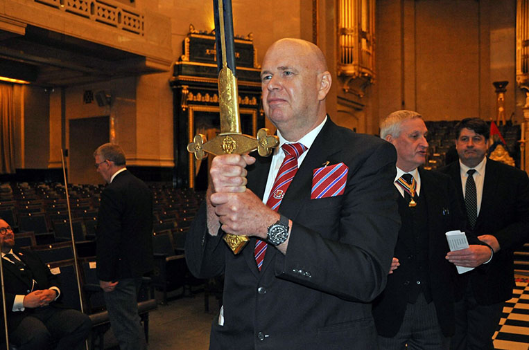 The Pro Grand Master was lead into Grand Lodge by WBro Tony Cross DepGSwdB, acting as Grand Sword Bearer for the day. | |