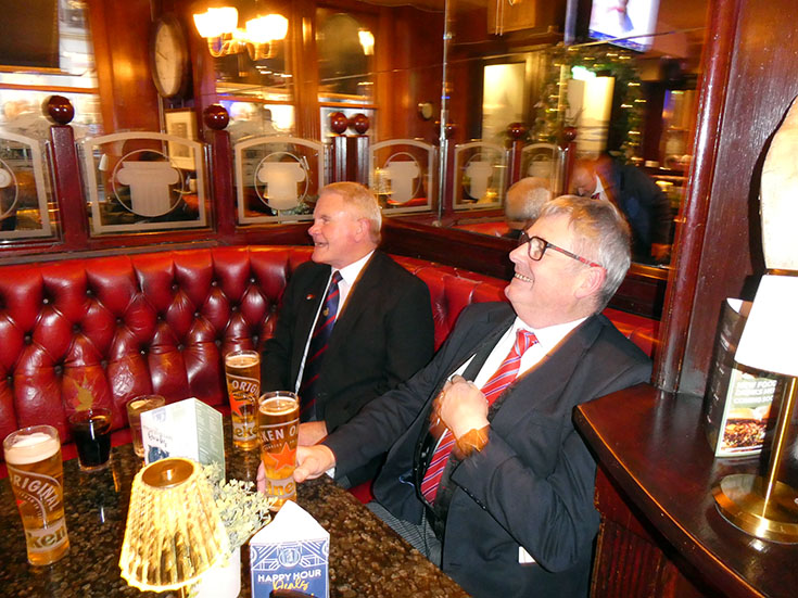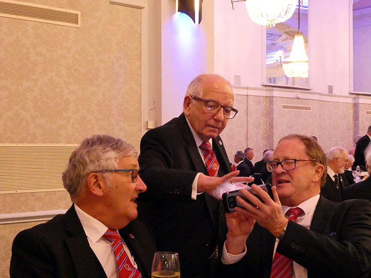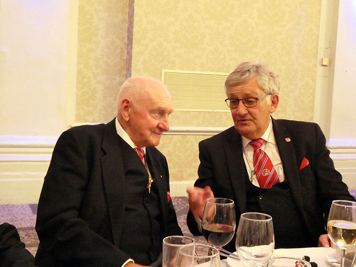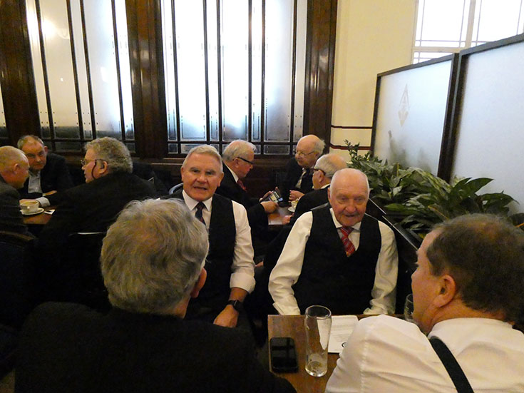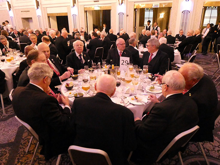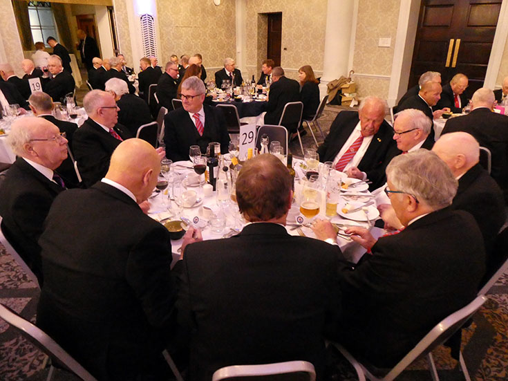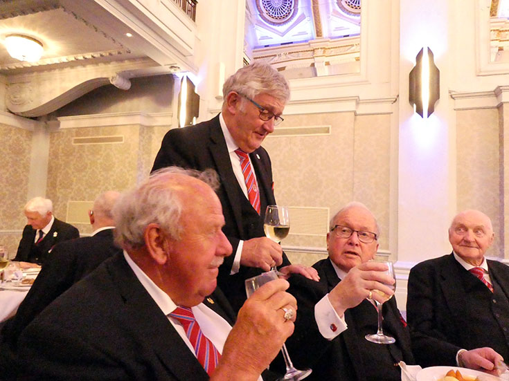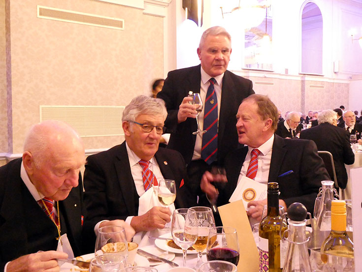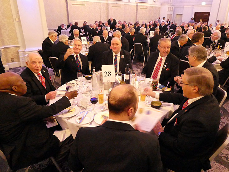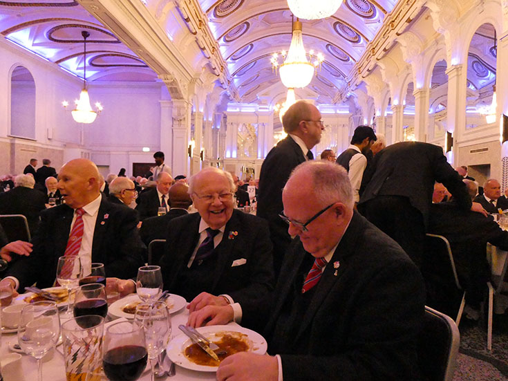 The meeting was closed and everybody retired to the Grand Connaught Rooms for dinner, entertaining conversation, a good deal of banter and some brief but entertaining speeches. | |