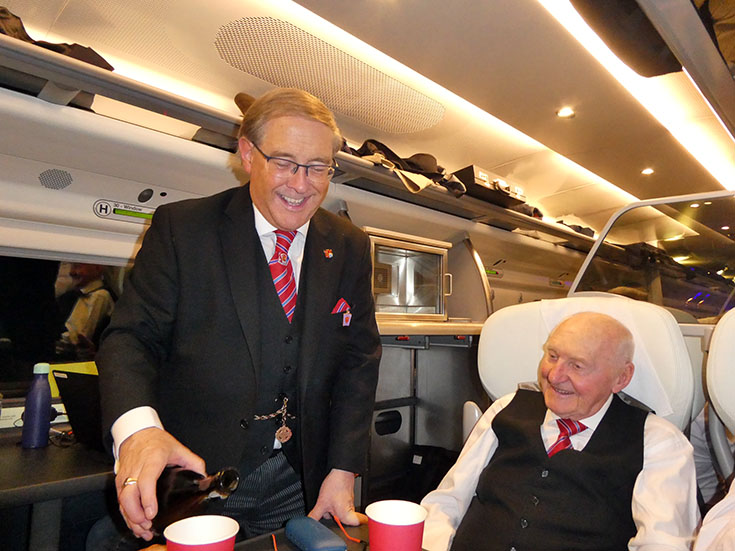 A great day was had by the West Lancs Mark Masons finished off with the last drop of wine on the train home. | |