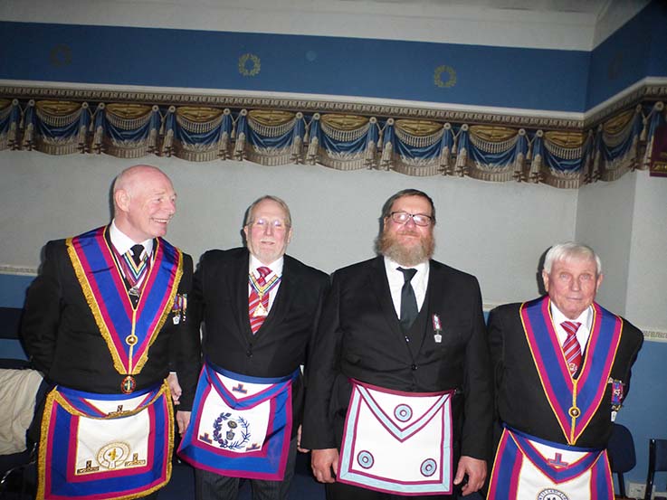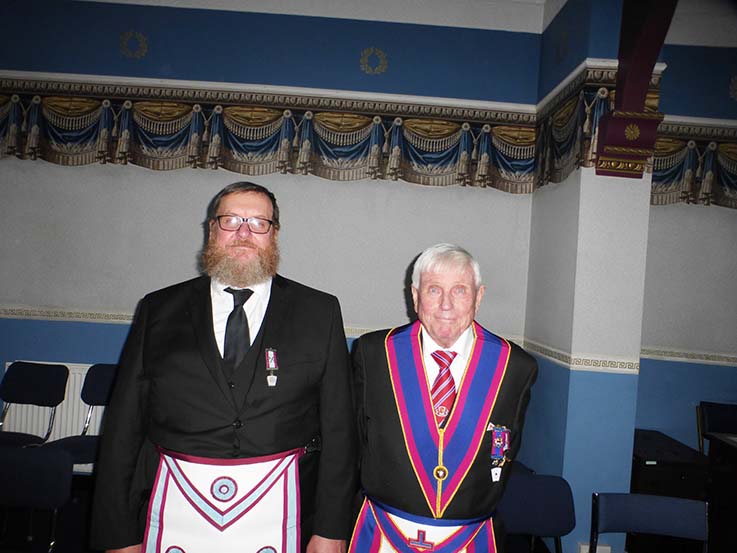It was a very nice surprise for the candidate to see his Dad in the chair, because Barry had not mentioned to Ian that he was going to do the ceremony. WBro Fisher did the Lodge and his son proud with the quality of the ceremony. WBro Arthur Robinson explained the Mark Working Tools to the candidate and this was to the same high standard. | |