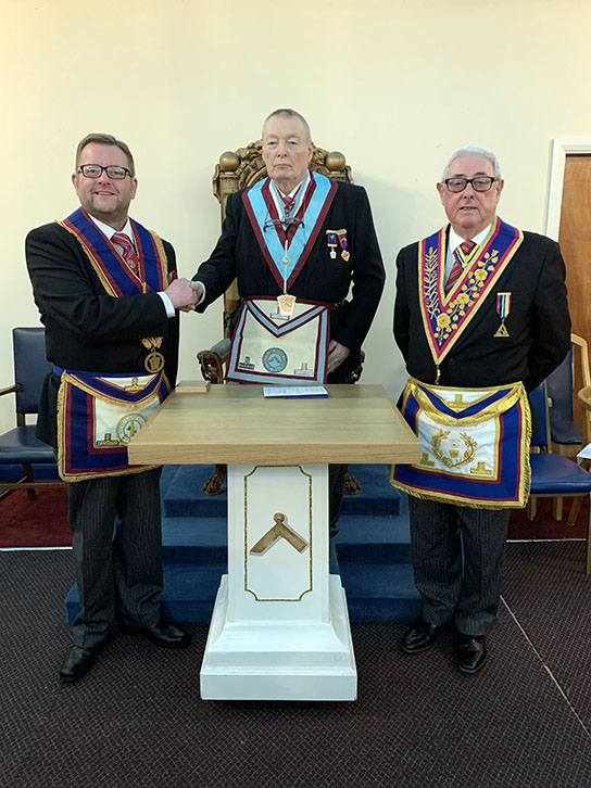 W.Bro. Paul Carr, Past Provincial Grand Sword Bearer, undertook the Ceremony in an exemplary manner under the guidance of W.Bro. Mike Melling, Past Provincial Assistant Grand Director of Ceremonies, the Lodge DC. Paul Carr delivered the Address to the Wardens. Mike Milling gave the Address to the Overseers and the Provincial Grand Junior Warden excelled with the Address to the Brethren. | |