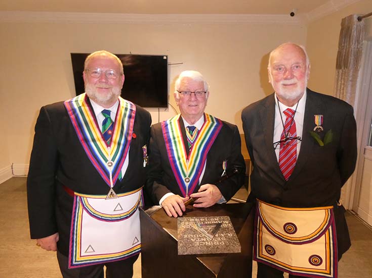 WBro Stansfield was assisted in the ceremony by WBro Glenn O’Brien and WBro Tony Thackrah (visitor – who explained the steps) | |