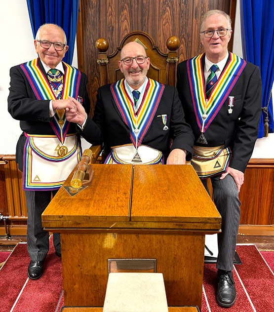 Once this was done and a duly constituted Assembly of Installed Commanders was opened Bro. Ralph Heyes was Installed in fine style by WC Melvin Bradley assisted by D.C. W.Bro. Vic Norris and other members of the Lodge, on completion all the members re-entered and had much pleasure in saluting their newly Installed W.C. | |