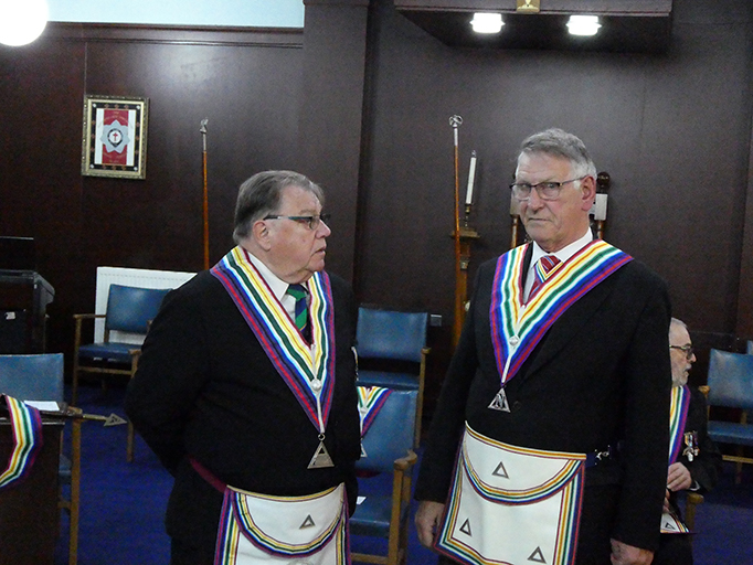 Bro. David Kenworthy was then declared as Worshipful Commander for the ensuing year and W.Bro. Harry Cox as treasurer. Both responded with thanks. | |
