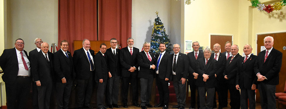 Making an unannounced but most welcome visit to the meeting was APGM Geoff Bury who was greeted by WM Peter Tooze-Froggatt. | |