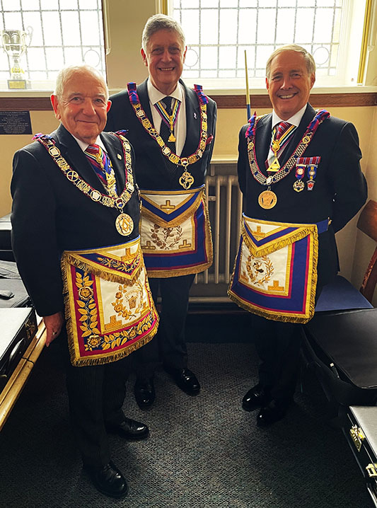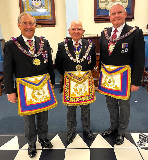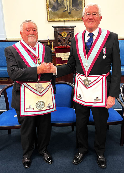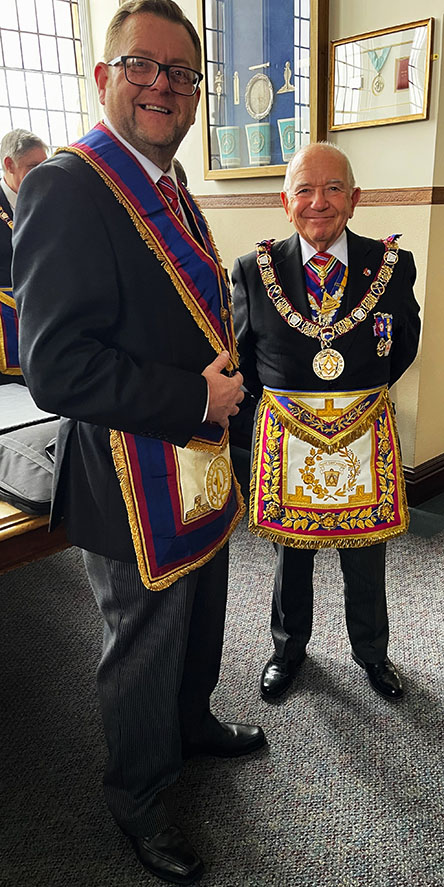 The meeting started on time and once several housekeeping items had been dealt the PGM entered accompanied by Acting Grand and Provincial Grand Officers, to be welcomed by the WM on behalf of all present, he was offered the Gavel which Keith said that on this occasion he would accept it for a short period so as to introduce the members of the team. | |