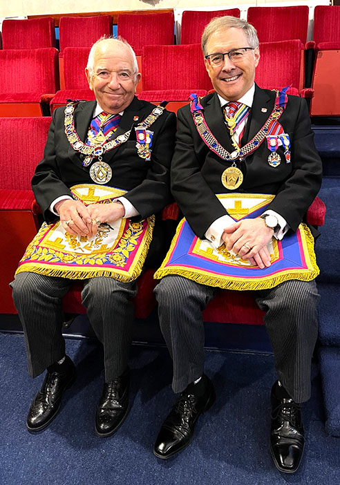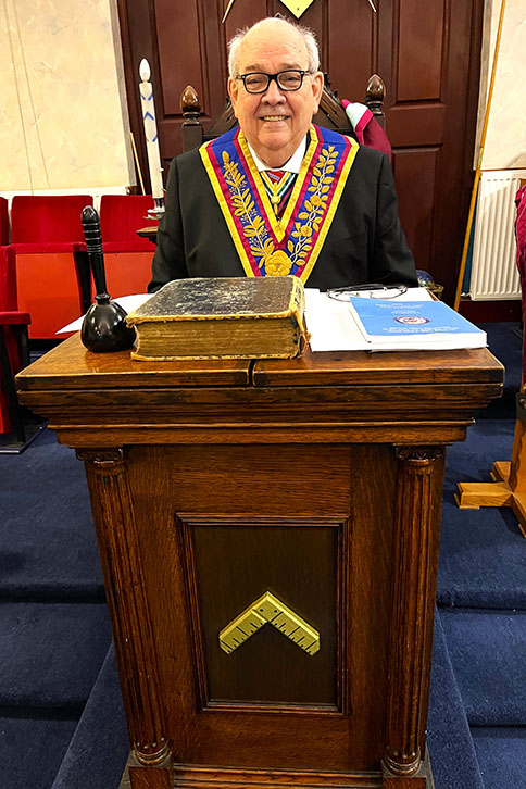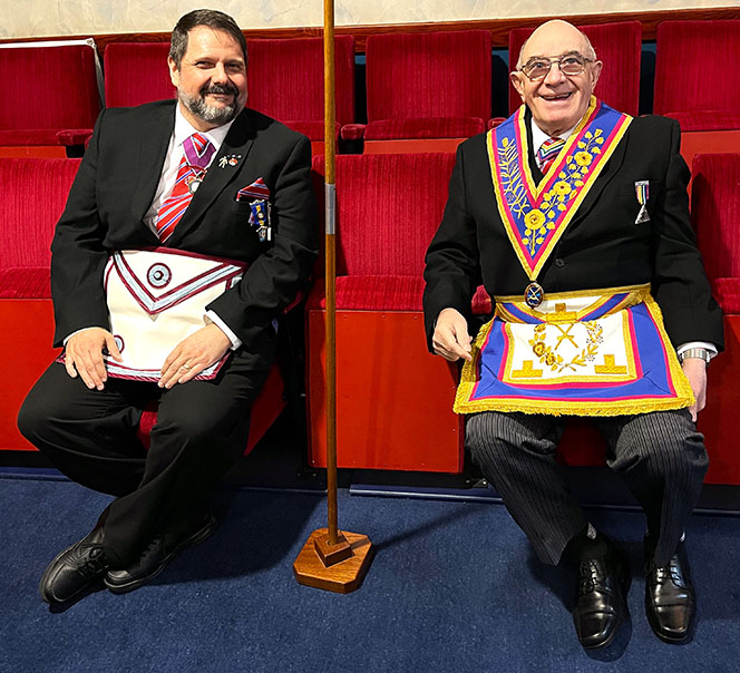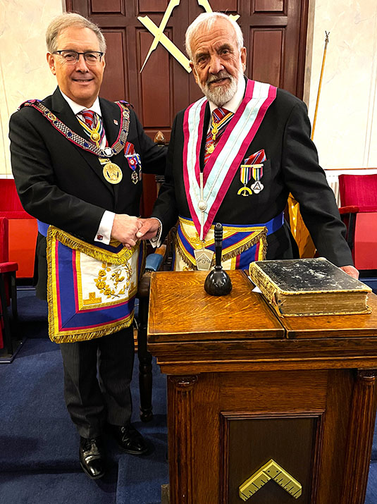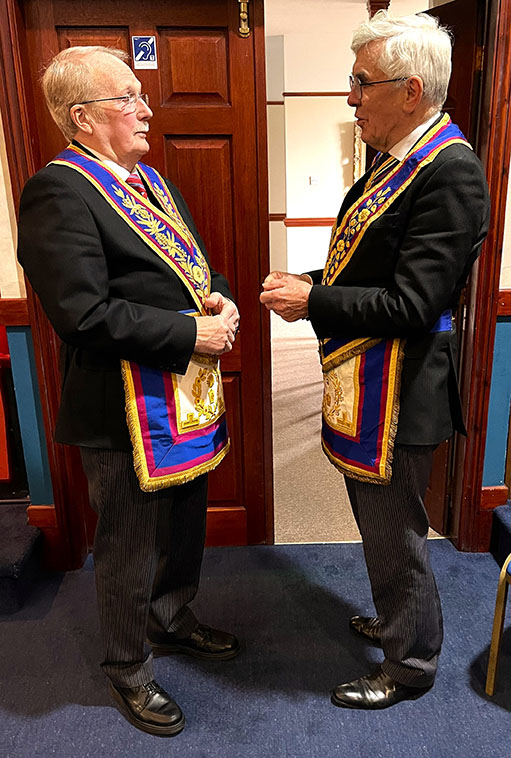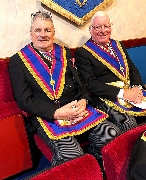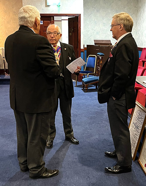 It had been expected that our PGM wasn’t going to make the meeting but surprise, surprise he appeared, however Asst PGM W.Bro. Giles Berkley PGJD continued as the main officer in charge, which was quite funny and made everyone smile, including Keith who became a ghost PGM. Giles was offered the Gavel by the W.M. W.Bro. Philip H Gunning PGJD, he thanked him for the offer but said that on this occasion he would hand it back as knew that the WM was looking forward to continuing with the Ceremony. | |