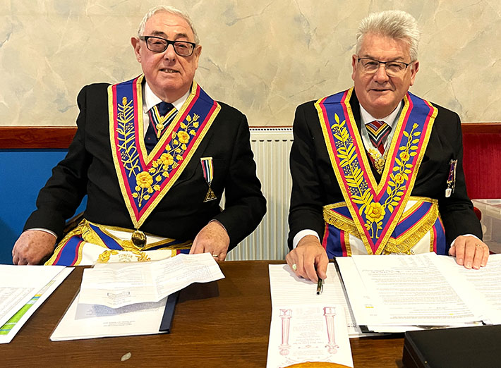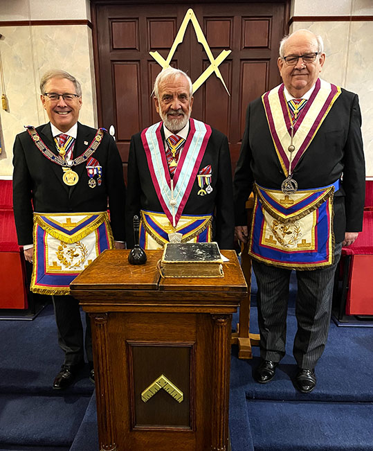 A Dispensation was read out allowing the meeting to meet on this day and at this time, it now continued at a pace, an Excellent Installation was carried out to Install V.W. Bro. Douglas John Forster PGJO into the chair of Adoniram by Philip who was assisted by members of the Lodge. | |