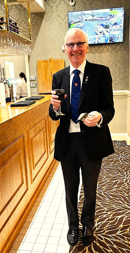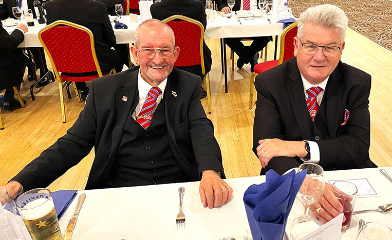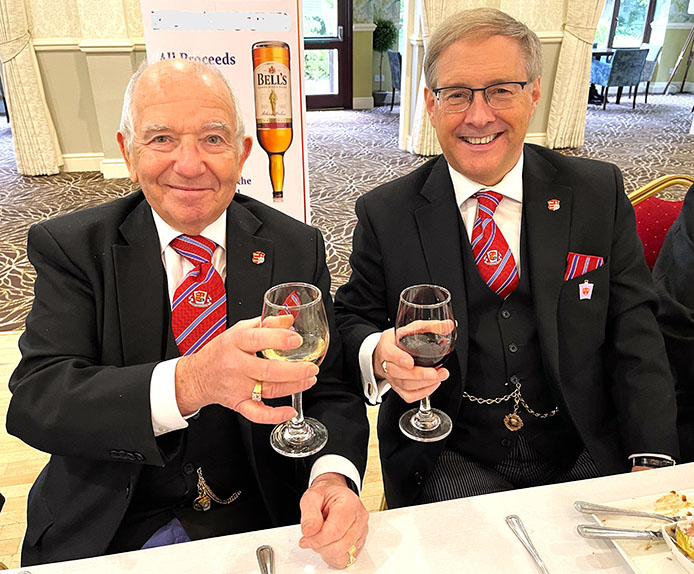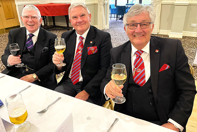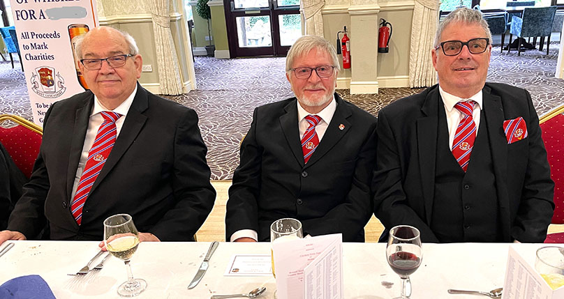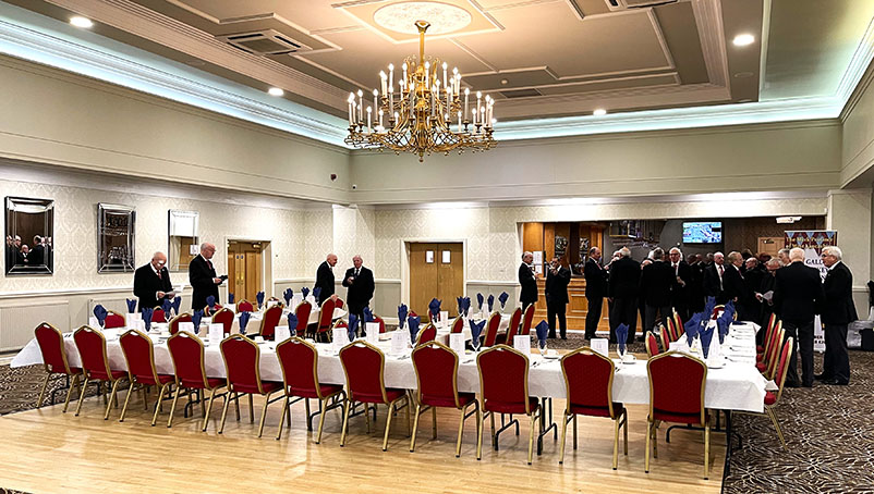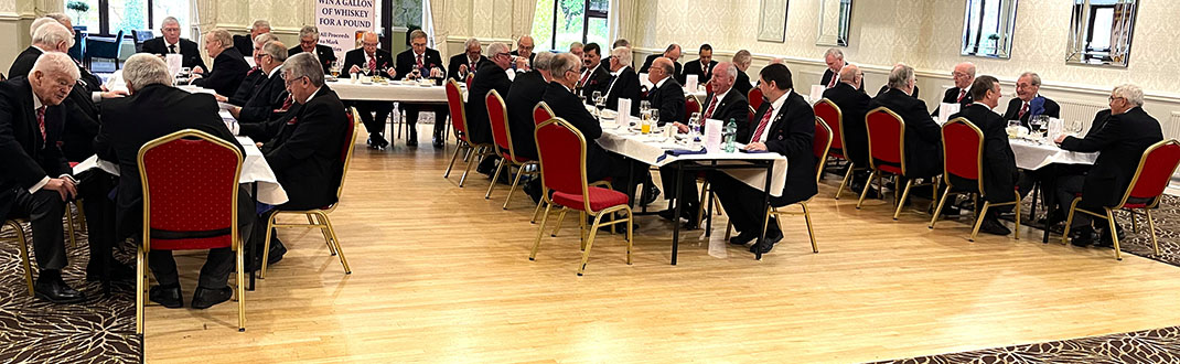 An excellent meal was served by the very efficient and friendly hall staff, including a lovely steak and some special dumplings which everybody enjoyed, it was finished off with Sherry Trifle, I’m sure everyone was now well contented and ready for the Toasts which followed along with some fine Responses. | |