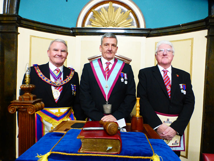 The Keystone Jewel was presented by WBro Derek Gaskell, and he also gave the Master’s and Overseers addresses. The Assistant Provincial Grand Master, WBro Mike Pinckard, then gave a fine address to the Brethren. When the ceremony was over WBro Mike Pinckard brought the RW Provincial Grand Master’s congratulations to WBro John Smith on taking the Chair for the first time and to the Installing Master, WBro Paul Green on the ceremony. | |