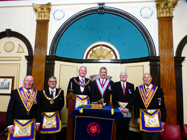 West Lancs Mark Lodge No 65 held their Installation meeting on 6th November at Liverpool Masonic Hall. In attendance was WBro Mike Pinckard, the Assistant Provincial Grand Master, who was accompanied by WBro James Rashid, PrAGDC. | |