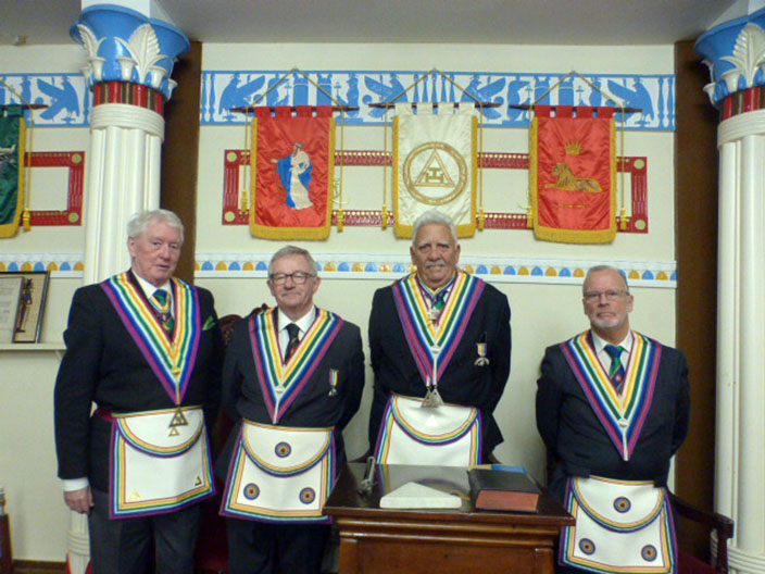The Worshipful Commander, WBro John Mackenzie opened the Lodge on time and approved the minutes. Salutations were then given to WBro Ian Clark, RAMGR, who was representing the Right Worshipful Grand Master and then it was time for the Elevation ceremony for Bro Roy Cowley. | |