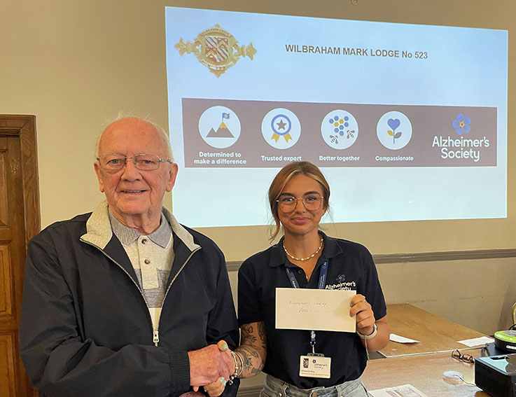 The third charity supported was the Alzheimer’s Society. A short, finance and research based, talk was given by Chantelle Day, after receiving a cheque from W Bro Brian Horabin. Chantelle told us that the money donated today would make a huge difference to their ability to continue to support sufferers and their families. She went on to advise of the great strides made by the charity to help ease and slow down the effects of Alzheimer’s. More than 40,000 people under the age of 65 in the UK have dementia. It is not only in the domain of the elderly and it is not a natural part of ageing. Please visit https://www.alzheimersresearchuk.org to get a real feel of the society and to help answer many of the questions raised during post presentations on 27th. | |