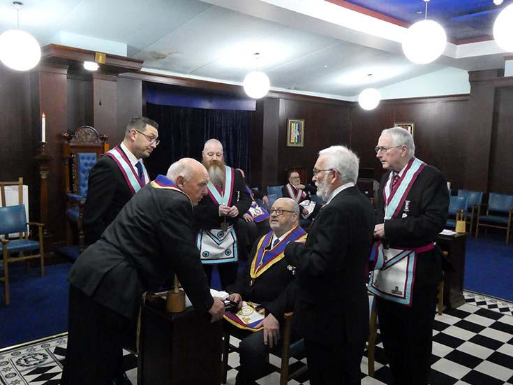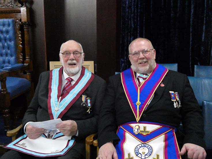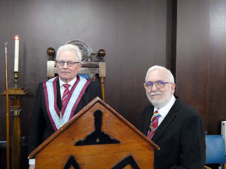 VWBro. Stephen Windsor Leach and VWBro. James Frances Rogers were both present as Senior members of the Lodge. | |