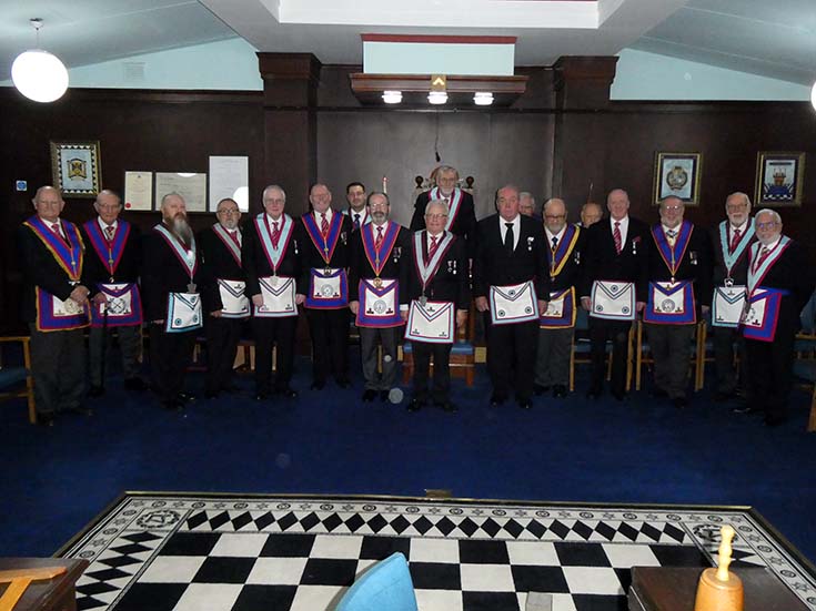 A ballot was taken for the candidate WBro. Andrew Harry Walch, which proved successful and the officers and guests of the Lodge worked through an excellent ceremony of advancement. VWBro. Jimmy Rogers acted as SD and expertly guided the candidate through the ceremony. | |