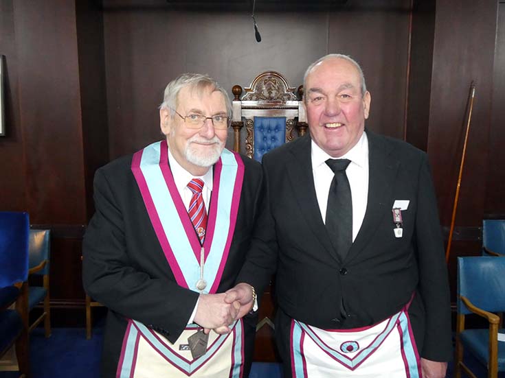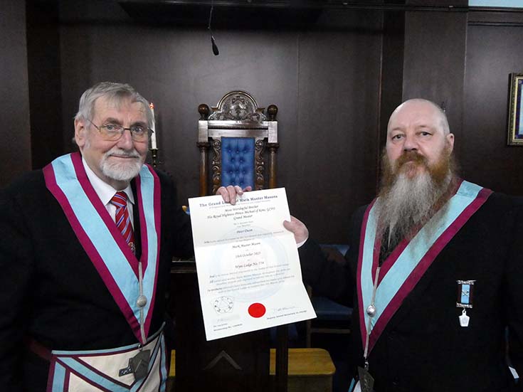 WBro. Tony Cross presented Bro. Peter Dunn with his Grand Lodge certificate. | |