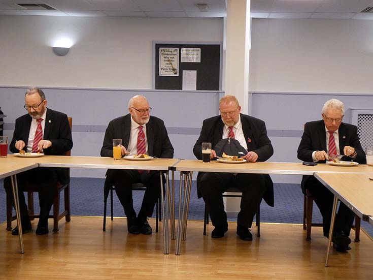 The Lodge business was finalised and the WM closed the Lodge and the members and visitors retired to the bar and onto the amply supplied festive board. | |