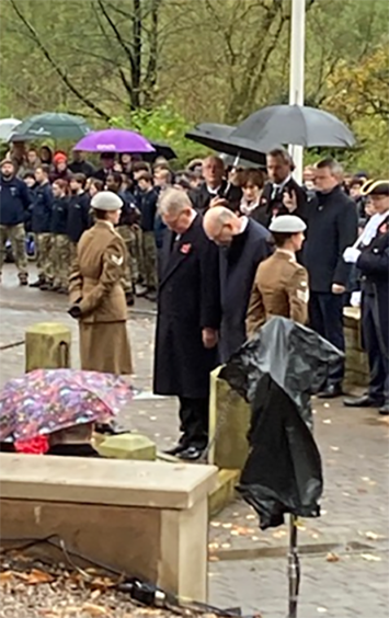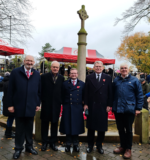 A healthy dose of Lancashire liquid sunshine did not stop a goodly contingent of Chorley Mark Masons attending the Service of Remembrance at the Cenotaph in Astley Park, Chorley on 9 November. The service and parade were well attended, with significant representation from the numerous Youth groups in the town. The Mark wreath was laid by WBro Vic Norris of New Temple Mark, and WBro Ralph Heyes who is currently Worshipful Commander of Lawrence RAM.