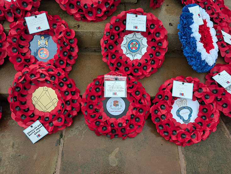 | A multitude of wreaths were laid and WBro Chris Walls ProvSGW had the honour to lay the West Lancashire Mark Master Masons wreath in the accompany of WBro Graham Chambers PAGDC who represented the Craft. | |
