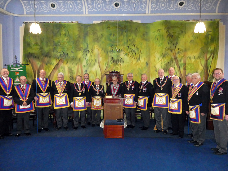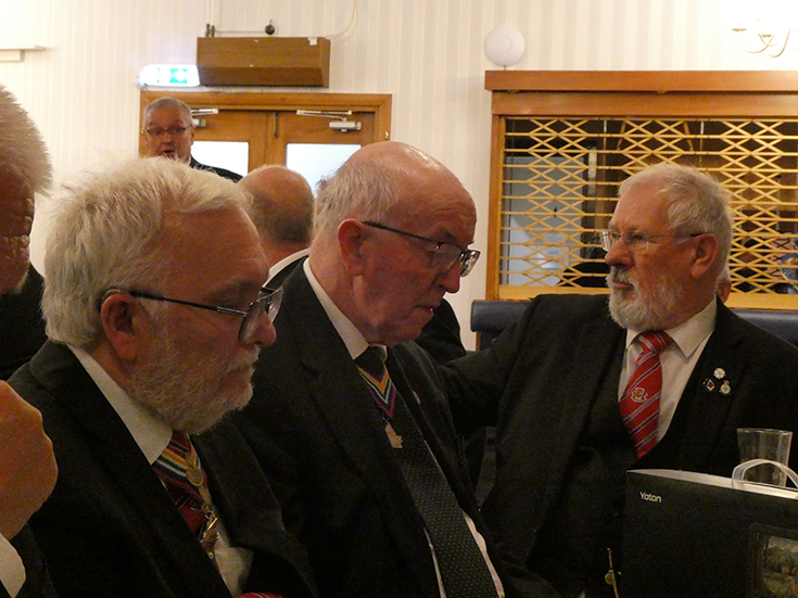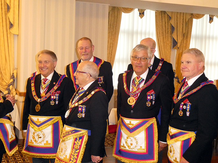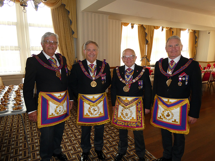 The RWPGM entered the Lodge accompanied by the Dep PGM and the two Assistant PGM’s and members of the Provincial team along with a number of distinguished Brethren. | |