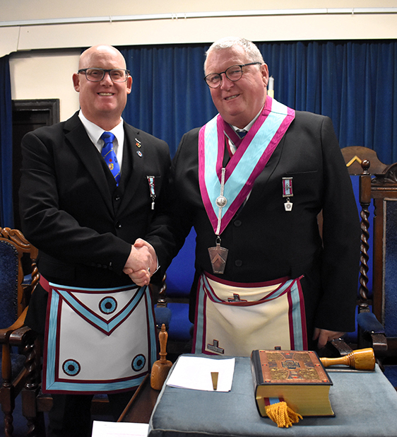 The first part of the ceremony was undertaken by Dave who then handed over to Alan Gregory for the second part of the ceremony. Tony made his way from the senior warden’s pedestal to present the working tools.