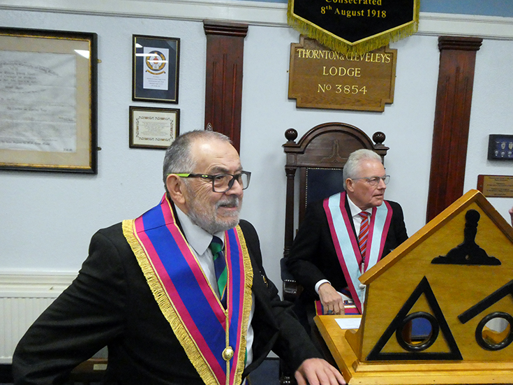 The WM then requested that WBro. Bob Stafford conduct the first part of the advancement ceremony and WBro. Alan Fairhurst the second part.